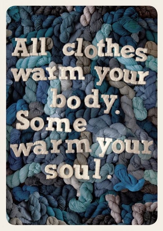 如果不是被这则广告勾起,很多人大概都忘了小时候穿过的妈妈手织的毛衣。那是真正的温暖牌,暖身又暖心。下面这几则广告,绒绒的毛线团让人心头柔软,绝对的治愈系。不过,这并非某织物商家的广告,而是一家叫The Knit Café的咖啡馆。你可以在那里聊天、织毛衣、织微博,当然还有咖啡,温暖是所有事件的中心。