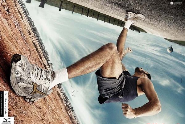头顶天,脚踏地,Mizuno运动鞋霸气十足的创意宣传,颇具“盗梦空间”的范。Mizuno在脚,奔跑吧,从荒野到公路,从城市到沙滩,不管你选择什么样的路,人生路,都在脚下,十分励志和充满力量的传播。