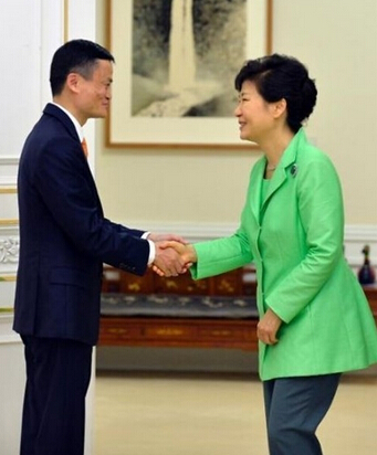 韩国当地时间2014年8月18日下午,韩国总统朴槿惠在青瓦台接见了阿里巴巴集团董事局主席马云。据相关媒体报道,双方就韩中两国在电子交易、游戏、影视等领域进行合作交换了意见。