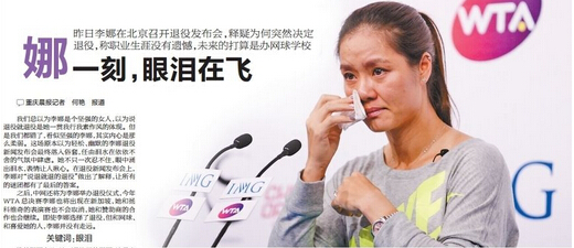 在微博上发表了近3000字告别信,但真正面对媒体,娜姐就连“再见”2字都难以讲出口。在昨天举行的李娜退役新闻发布会上,娜姐尽现女性柔情的一面,面对媒体,她三度落泪。